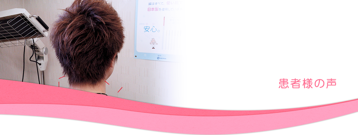 私は小学生の頃より視力が悪く、メガネを使用しています。以前から眼や肩が苦しくなったり、頭痛がしたりしていましたが、高校受験の為勉強時間が多くなり、毎日が辛く勉強が頭に入りませんでした。そんな時祖母が腰痛で通院している治療院に行く事になりました。「ハリってお年寄りが行くところジャン!」と思い嫌でしたが行ってみると、中・高生もけっこう来ていました。治療も痛くなく、症状も楽になり、現在は第一希望の高校に通学しています。
